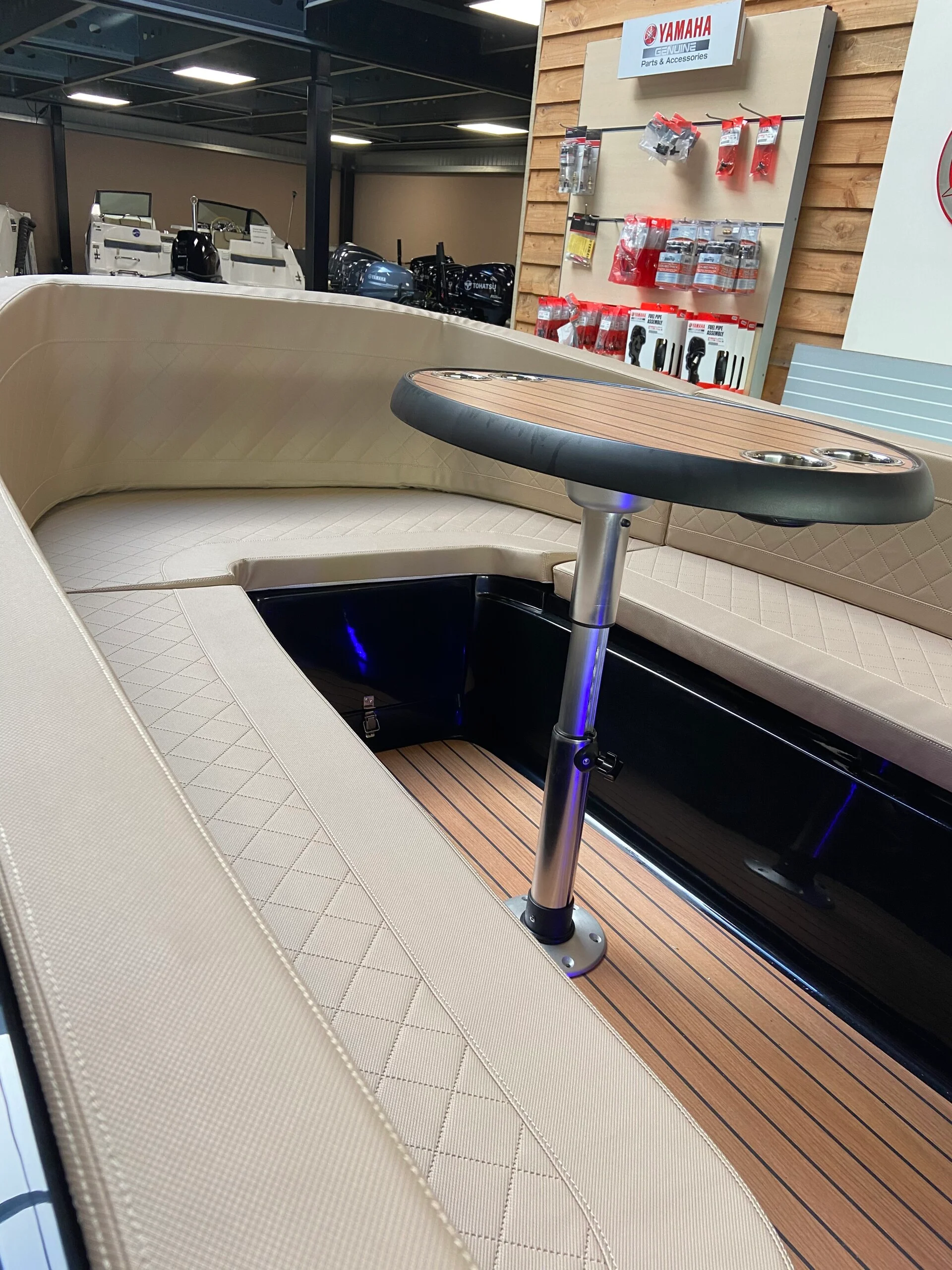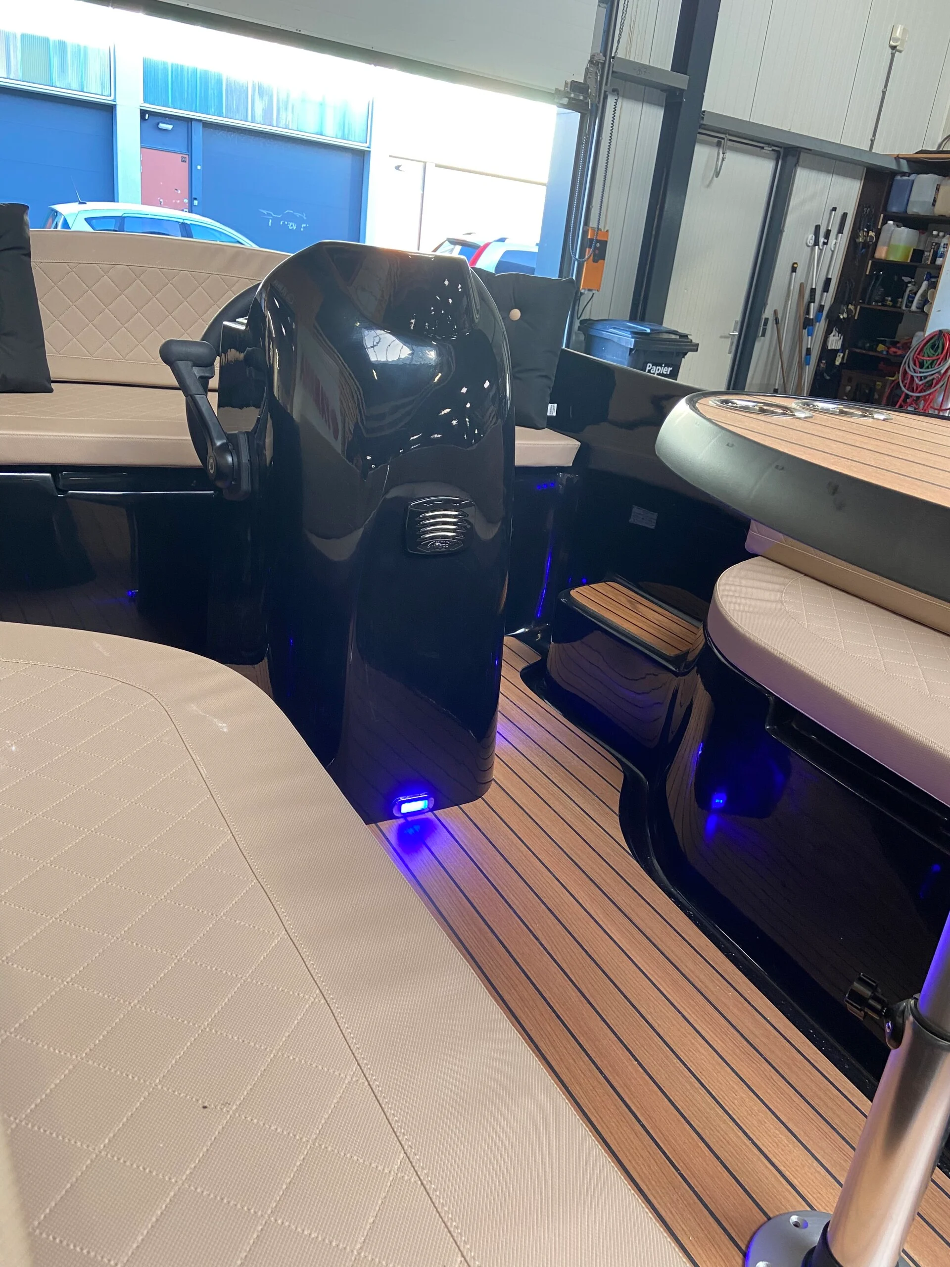 De middenconsole geeft de Funmaxx 480 een open en ruimtelijk karakter en maakt de boot van alle kanten goed toegankelijk. De hoge rugleuningen rondom en de luxe afwerking zorgen voor een prettige zitpositie, ook tijdens langere tochten.