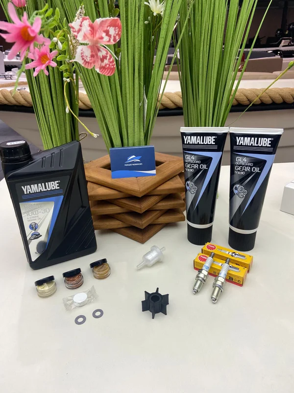 Het pakket bevat onder andere een bougie, brandstoffilter, pakkingen voor het staartstuk, motorolie en staartstukolie. Daarnaast bevat het pakket ook kopervet en Yamalube lical grease voor de knevels, wat zorgt voor een soepele werking van de motor.